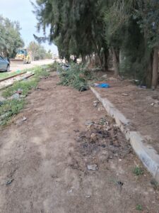 كما تم إرسال فريق مختص من أعوان حضائر الفلاحة الذين تولوا القيام بعمليات تقليم الأشجار وتنظيف كامل المحيط من الأعشاب الطفيلية، مما ساهم في تحسين الوضع البيئي والصحي لهذا المرفق الحساس.